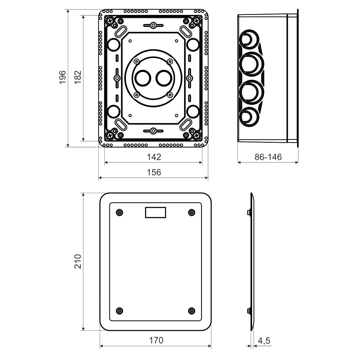 Для установки в утепленные фасады зданий толщиной 80 - 140 мм или в качестве короба под штукатурку. Использование в качестве распределительной коробки, для измерительного вывода молниеотвода и других применений по желанию заказчика. Регулируемая глубина ящика. В комплект входит коробка и плоская крышка + винты из нержавеющей стали + прокладка. Прочная конструкция. Охраняется европейским промышленным и полезным образцом.